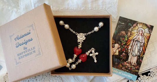 Heart and Pearl Single Decade Car Rosary Pearl Heart