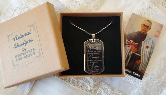 Serenity Prayer Dog Tag Necklace on Ball Chain Necklace