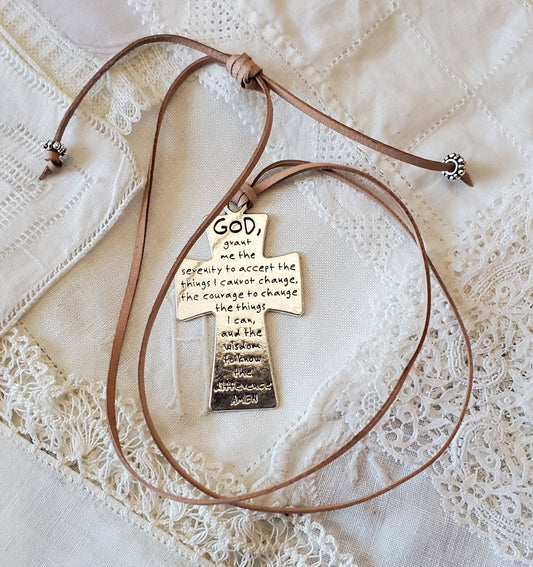 Serenity Prayer Pendant with Adjustable Leather Cord