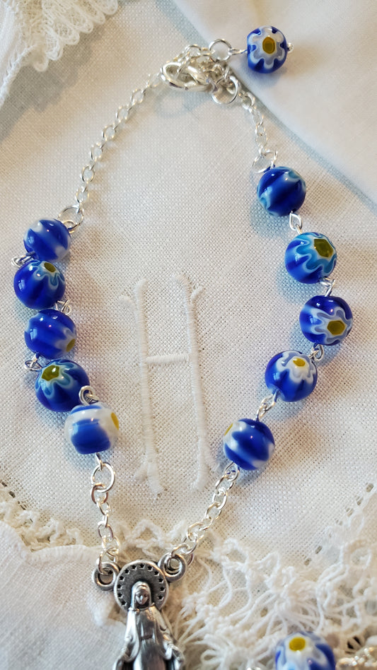 Customizable Madonna and Child Bracelet Floral Porcelain Beads, Adjustable Rosary, Miyuki Spacer beads, prayer card