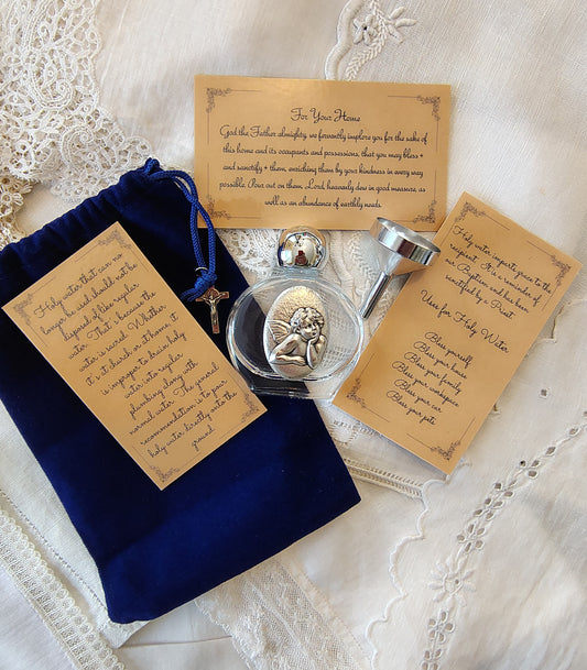 Set de regalo de botella de agua bendita Querubín de la Capilla Sixtina de Rafael, regalo católico, Aqua Bendita, regalo de Battesimo, regalo de bautismo, primera comunión, recuerdo de confirmación