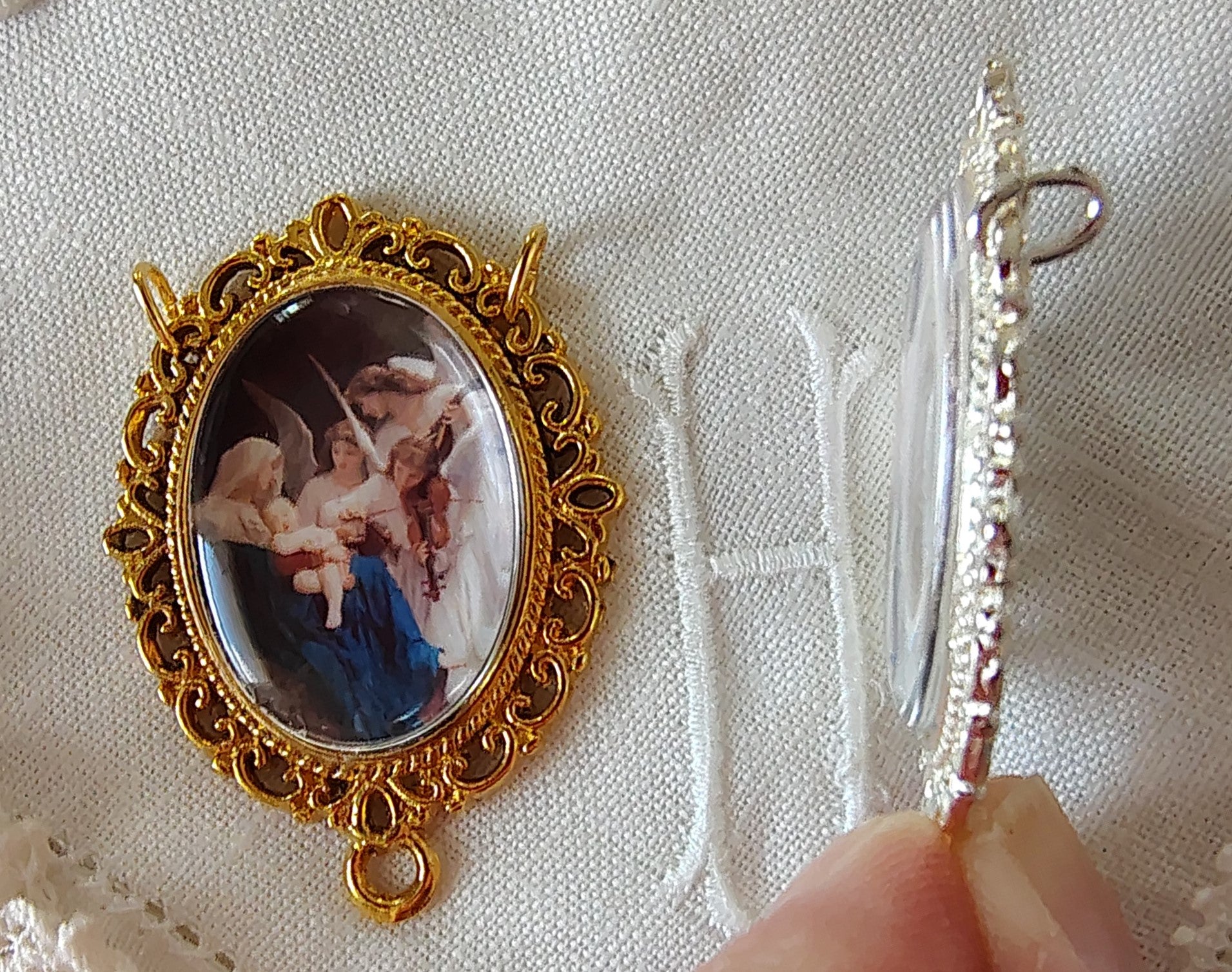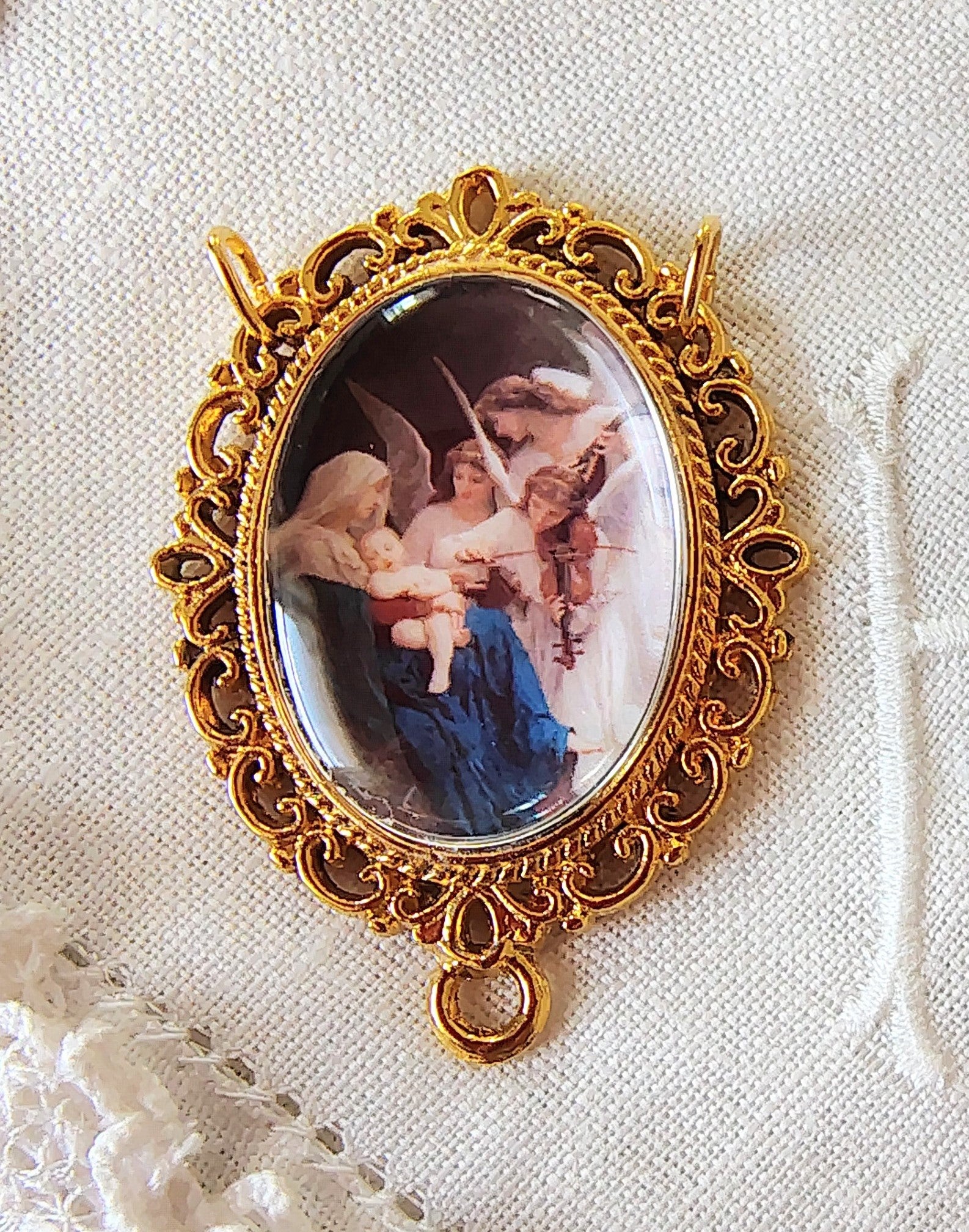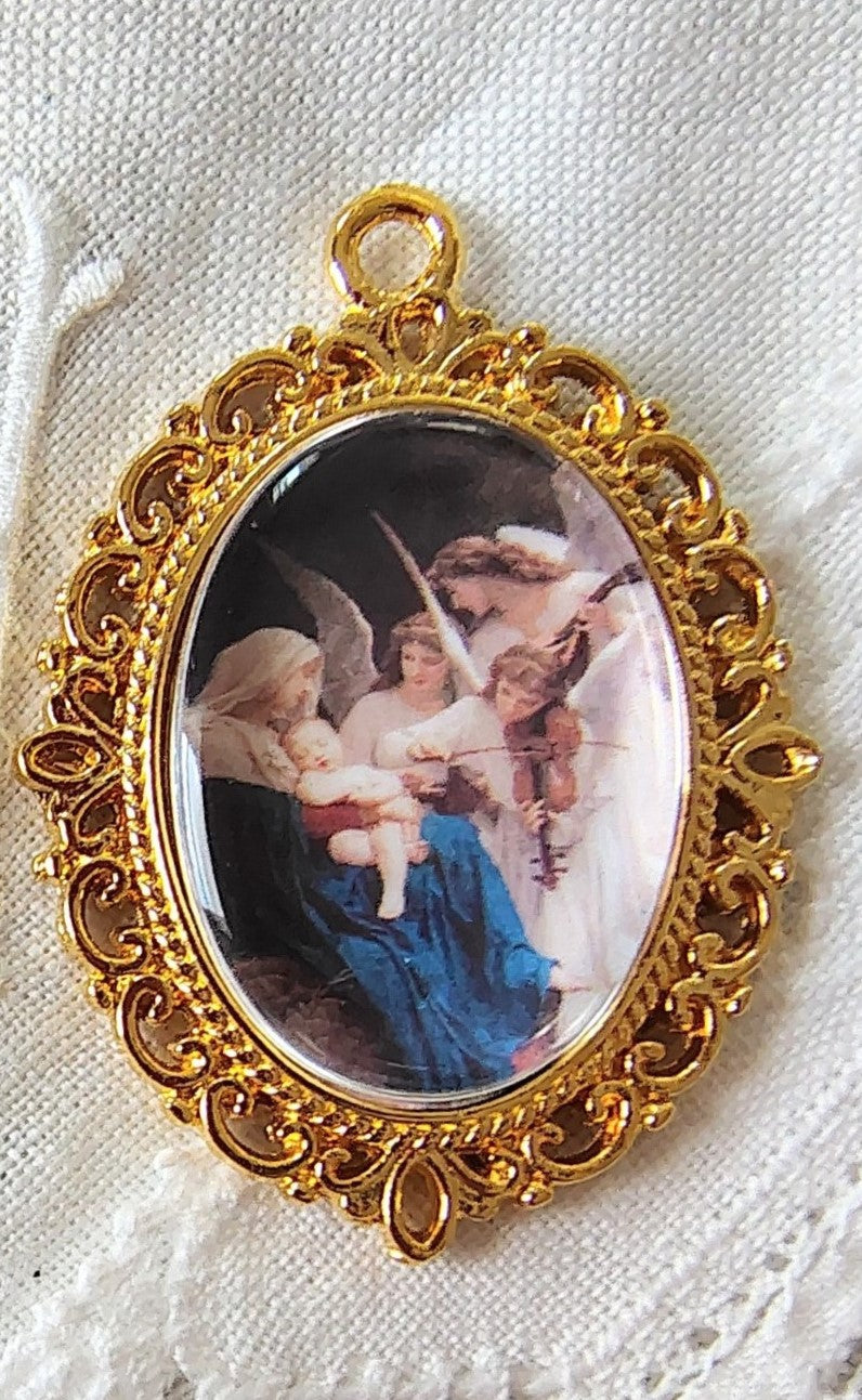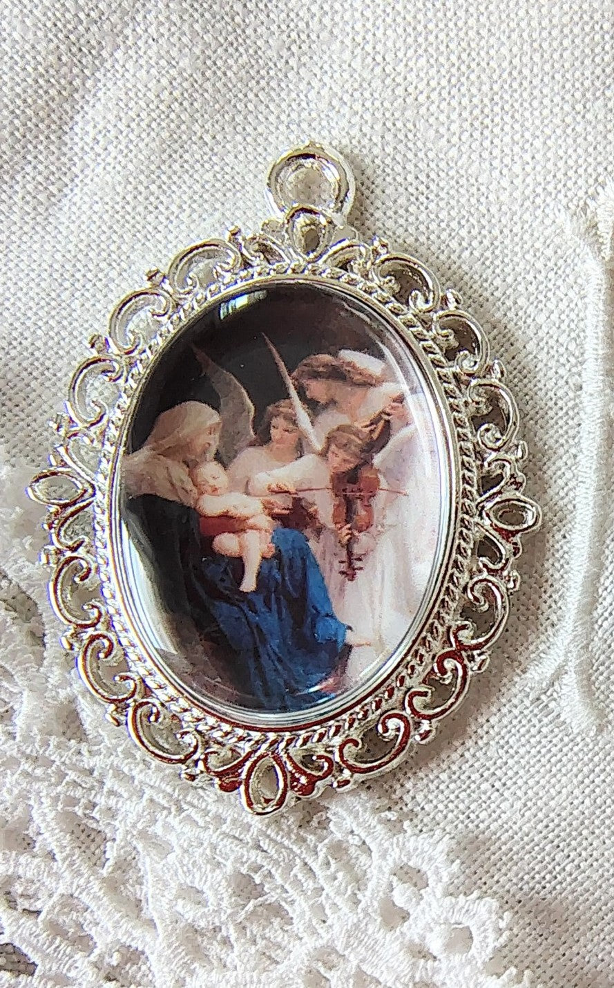 Rosary Centerpiece Bouguereau "Song of the Angels" Catholic Pendant Miniature Sacred Art Silver or Gold Plated Handmade Czech Cabochon