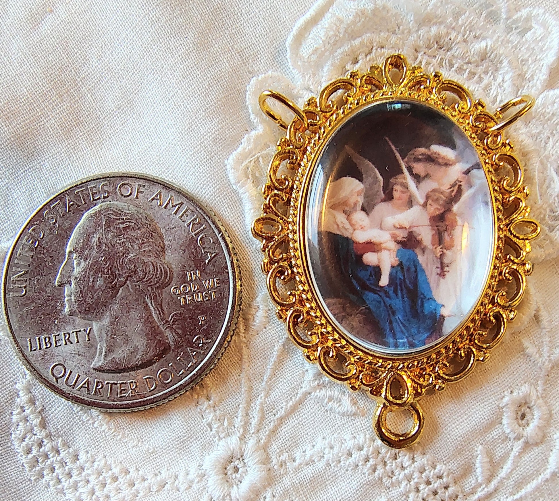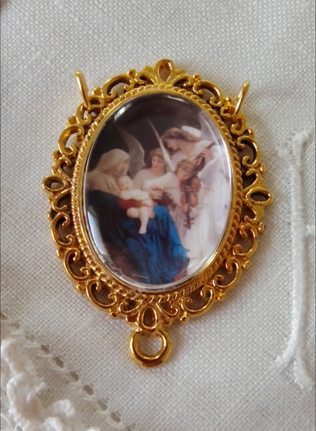 Pendant Option: Each piece is available for the same price as a pendant. This piece is the first in a growing series of Catholic art Rosary Centers and jewelry pendants inspired by Bouguereau’s and other Master artists sacred paintings — each piece a small, highly detailed work of art.
