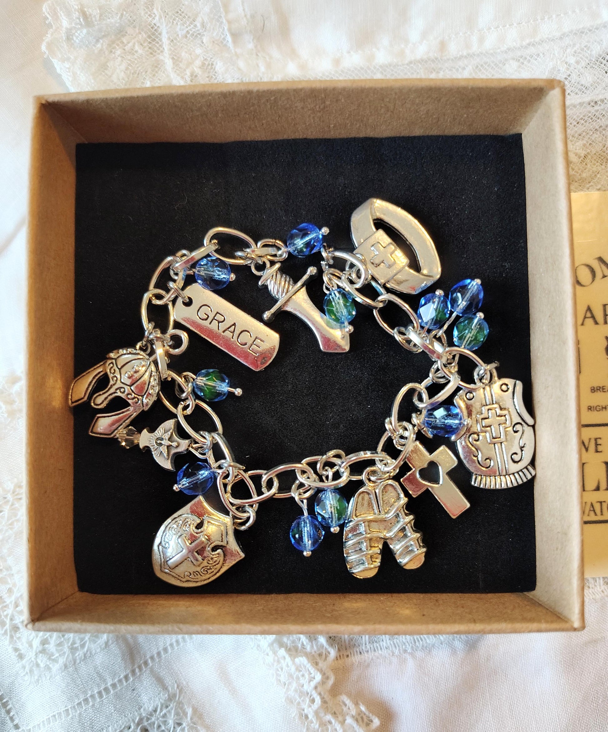Protestant, nondenominational Full Armor of God Czech crystal charm bracelet.