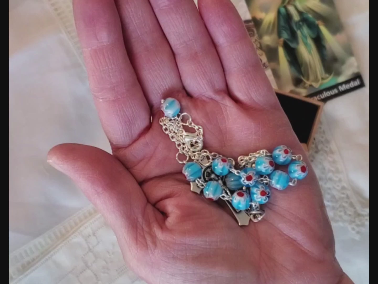 This will be packaged in our signature black velvet lined box and will be accompanied by a coordinating Miraculous Medal and Saint Benedict Medal prayer cards.