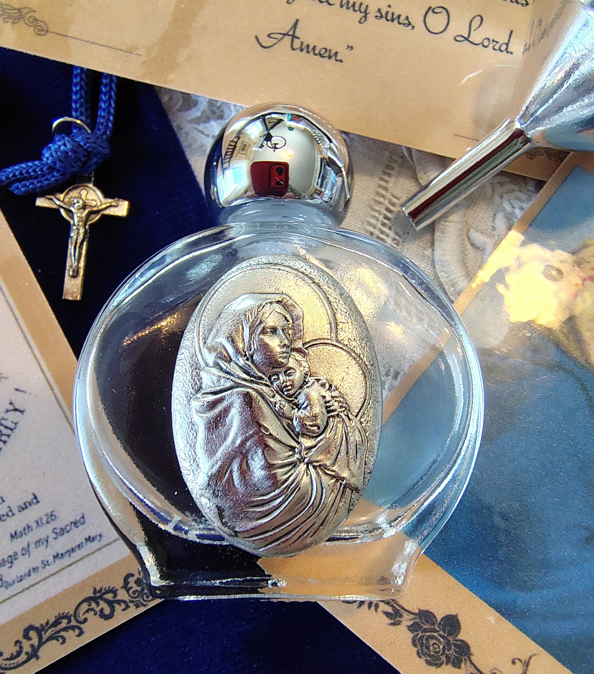 Also available: 4-ounce spray bottles for Holy Water, which come with the same thoughtful details as the 2-ounce sets. Please see other ads.