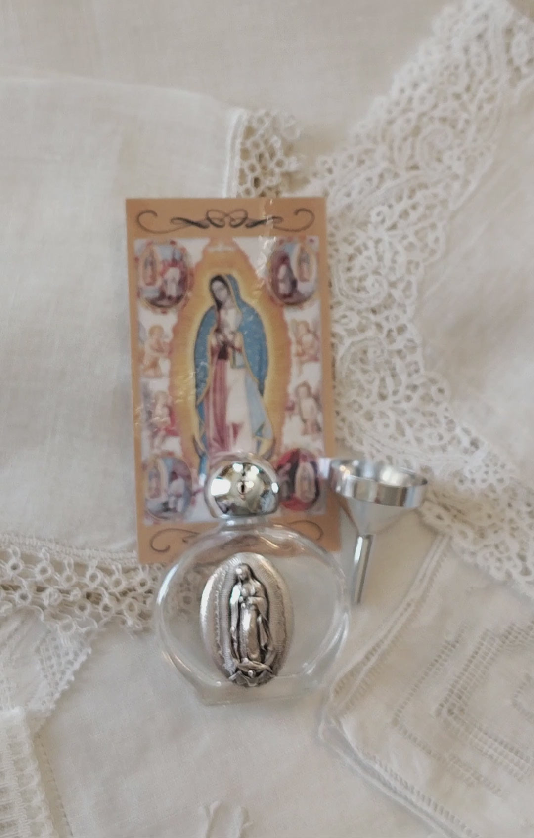 Our Lady of Guadalupe Holy Water Bottle Gift Set, Catholic present, Aqua Bendita, regalo de Battesimo, Baptism gift, 1st first communion, confirmation keepsake