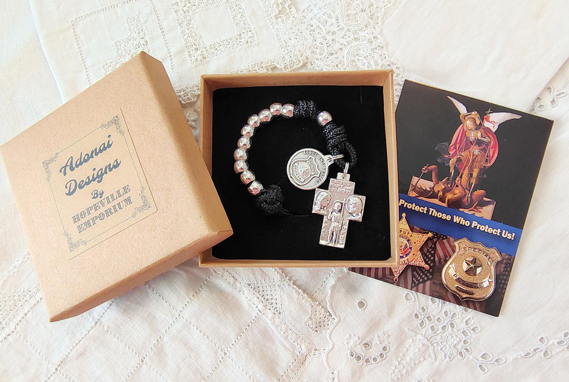 Rosary paracord police protection sheriff tenner prayer beads Saint Michael ice border patrol Saint Benedict crucifix spiritual warfare gift