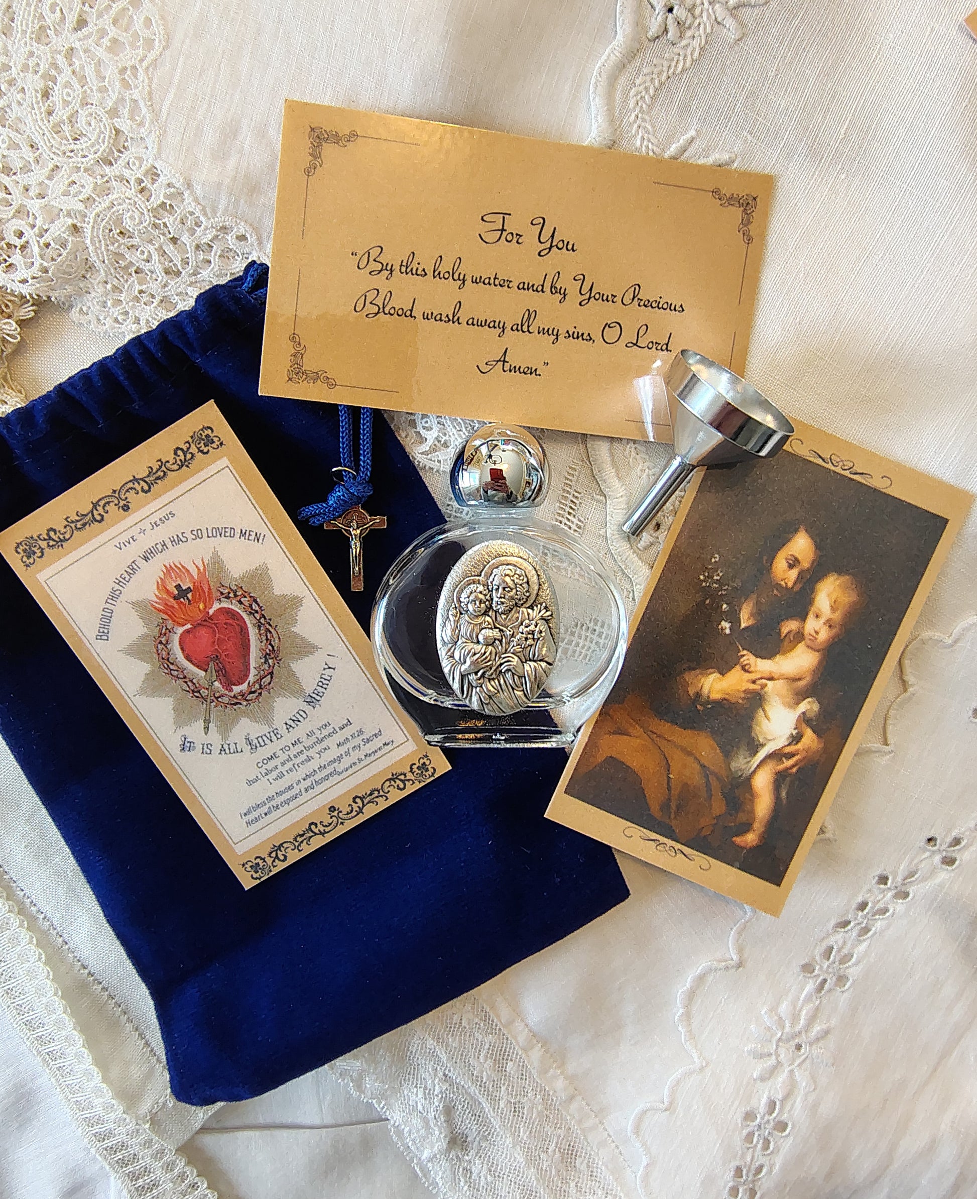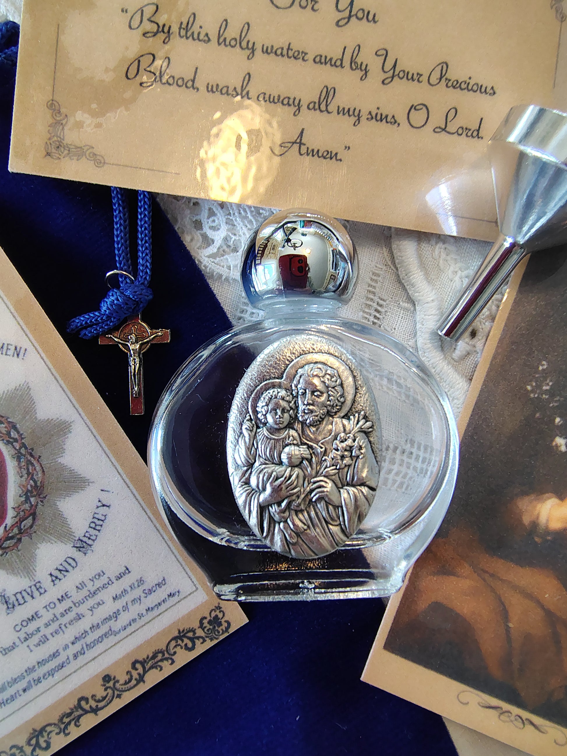 Saint Joseph "Terror of Demons" Holy Water Bottle Gift Set, Catholic present, Aqua Bendita, regalo de Battesimo, Baptism gift, 1st first communion, confirmation keepsake