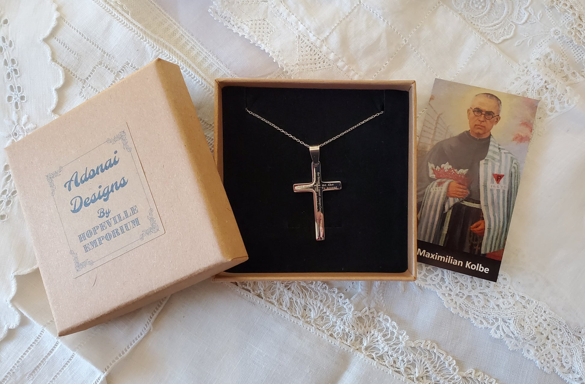 This Serenity cross will come packaged in our signature Black Velvet lines box with a Saint Maximilian Kolbe Prayer card who is the patron saint of addiction recovery.